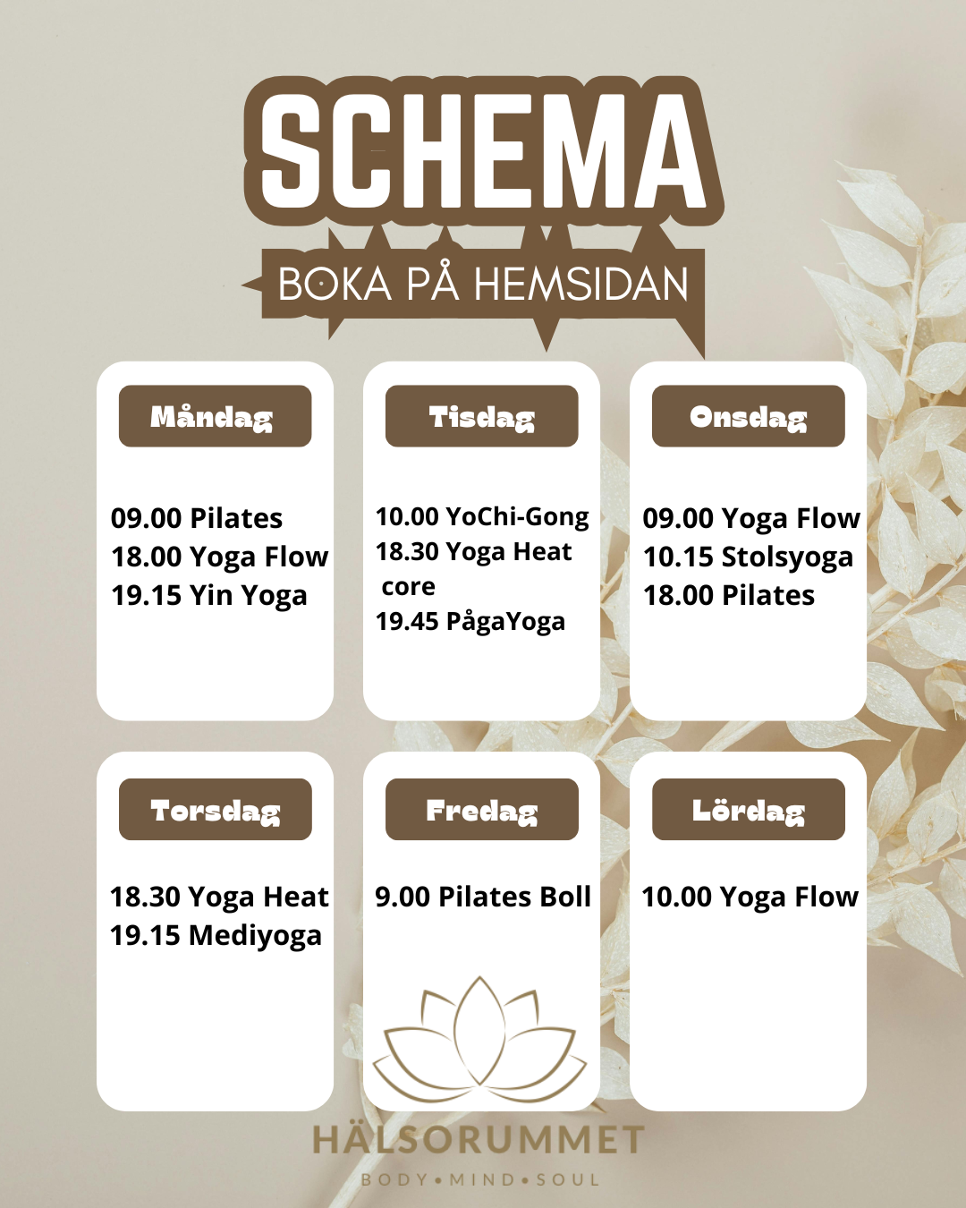 På Hälsorummet hittar du holistisk träning, yoga och pilates samt Malins härliga massage.